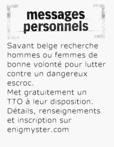 - Je suis d'accord avec vous, cette énigme 999 est vraiment de très mauvais goût, comment peut-on se prétendre un gentleman et s'autoriser de telles fantaisies ? Quand je pense aux pauvres jeunes femmes qui ont ainsi été exposées à pareille abjection, une fois.